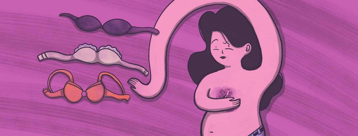 Over the years I have found that my handbag will often contain some cornflour in a small container, some cream, and a good few panty liners. When the idea of a bra touching my skin is just too much, I will use this method if I am having a terrible flare and it's just way too hot.