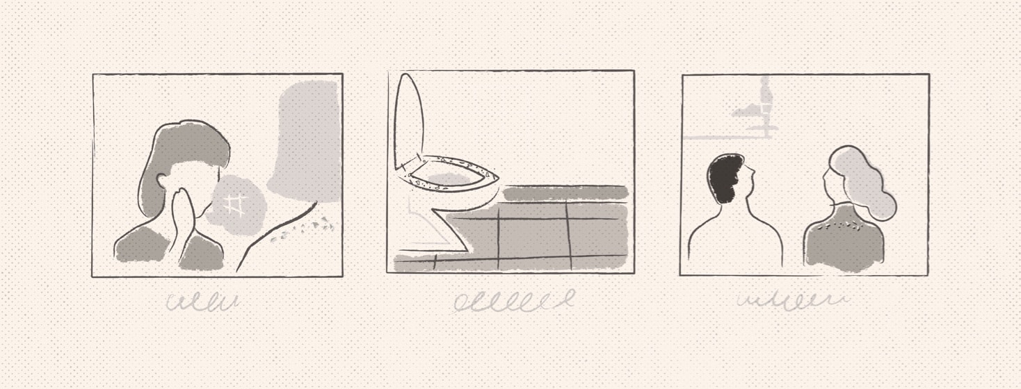 This actually happened to me and it was SO embarrassing. I actually thought I was doing a good job by cleaning up behind myself. At this time my psoriasis was very bad which included itchy, flaky, dry skin. In my situation, I choose option B!