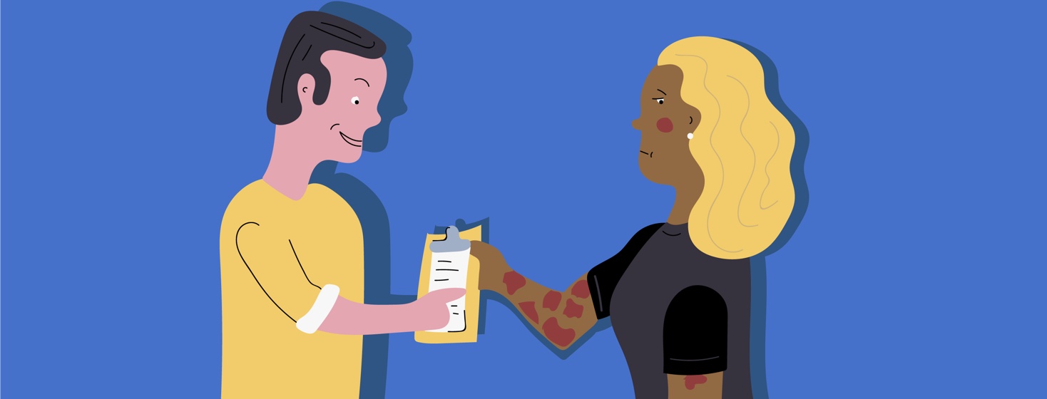 I work for a company that delivers home health equipment to people’s homes. Every day I go into stranger’s homes, which gives me the privilege of meeting many new people. Well, the other day, I was delivering to a woman and as I gave her the clipboard to sign paperwork, I noticed familiar lesions up and down her arms. It was like I was staring at my arms from three years ago. They were red and covered in thick buildup from her elbow down to her wrist.